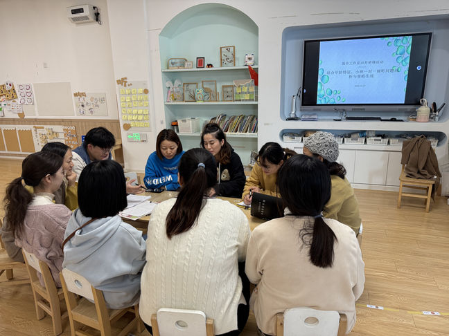 基于上一轮教研梳理的核心问题,结合幼儿年龄特点剖析问题根源,共同研讨可落地的倾听策略,切实提升教师一对一倾听的专业能力,从而更好地理解幼儿需求、支持幼儿发展。2025年10月27日科教新城幼教中心桴亭路幼儿园筑亭工作室开展了教研活动。