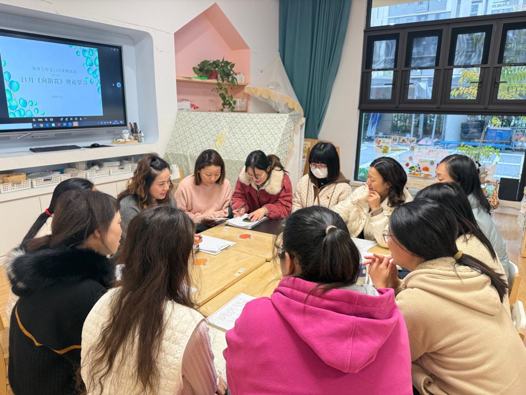 《纲要》指出“幼儿园应与家庭、社区密切合作,与小学相互衔接,综合利用各种教育资源,共同为幼儿的发展创造良好的条件”、“充分利用自然环境和社区的教育资源,扩展幼儿生活和学习的空间”等,而当前的课程资源开发与利用过程中,存在资源开发与利用杂乱化、表面化、成人化、形式化等问题。为了明确幼儿园课程资源开发与利用的实施路径,让幼儿园课程生发出在地感。2025年12月9日,筑亭工作室组织教师开展了11月《向阳花》学习研讨活动。